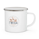 Get your hands on this durable enamel mug that holds 12 ounces of your favorite Twiga Coffee beverage. Great for indoors and outdoors activities as it can keep up with the dirt and grunge of campsites. This sturdy and stylish cup is perfect for coffee, tea or even your morning cereal in the wild.